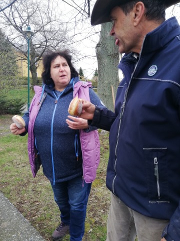 9.30 Uhr treffen wir uns an der Tischtennisplatte. Schön...so viele haben sich Zeit genommen, sogar eine kleiner Hund ist mit von der Radpartie. Das Wetter ist sehr schön, wenn auch ein wenig frisch am Morgen. Das hält uns aber nicht ab, schon nach 4 Kilometern eine neue Location in Rennersdorf zu "stürmen". Sie haben gerade erst die Luke geöffnet, da freuen wir uns schon über Kaffe und Kuchen oder auch ein kühles Blondes. Frisch gestärkt und etwas ausgekühlt geht´s wieder los. Schöne Weitblicke über die Rapsfelder sind ein Gedicht für jedes Auge. Kurz durchs Kesselsdorfer Gewerbegebiet schickt uns die Route auf eine alte Bahnstrecke. Hier könnte man auch prima wandern. Heute geht es aber mit dem Rad´l voran. Unseren Proviant haben wir immer dabei. Diesmal fährt ein Speisewagen mit. Dank des E-Bikes ist das kein Problem und wir sind unabhängig. Noch einen Berg erklimmen, dann gibt es Bocki und Brötchen. Getränke, Süßes.....alles mit. Klasse. Der kleine Gaskocher macht was er soll und so werden wir alle satt und zufrieden. Jetzt schaut uns die Sonne auch beim Essen zu.