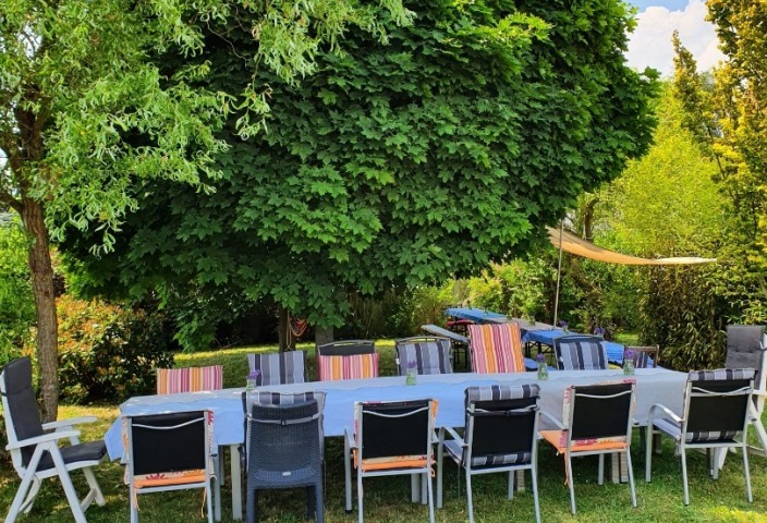 Schon bei der Ankunft in dem hübsch und liebevoll hergerichteten Garten der Familie Gierend, dem diesjährigen Gastgeber, empfängt mich eine entspannte Atmoshäre. Das Wetter ist perfekt. Im Schatten eines Ahornbaumes finde ich ein schönes Plätzchen und komme gleich ins Gepräch mit meinen Sitznachbarn.