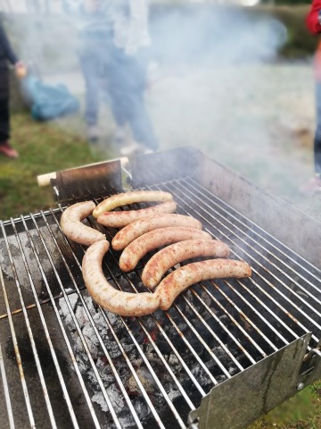 9.30 Uhr treffen wir uns an der Tischtennisplatte. Schön...so viele haben sich Zeit genommen, sogar eine kleiner Hund ist mit von der Radpartie. Das Wetter ist sehr schön, wenn auch ein wenig frisch am Morgen. Das hält uns aber nicht ab, schon nach 4 Kilometern eine neue Location in Rennersdorf zu "stürmen". Sie haben gerade erst die Luke geöffnet, da freuen wir uns schon über Kaffe und Kuchen oder auch ein kühles Blondes. Frisch gestärkt und etwas ausgekühlt geht´s wieder los. Schöne Weitblicke über die Rapsfelder sind ein Gedicht für jedes Auge. Kurz durchs Kesselsdorfer Gewerbegebiet schickt uns die Route auf eine alte Bahnstrecke. Hier könnte man auch prima wandern. Heute geht es aber mit dem Rad´l voran. Unseren Proviant haben wir immer dabei. Diesmal fährt ein Speisewagen mit. Dank des E-Bikes ist das kein Problem und wir sind unabhängig. Noch einen Berg erklimmen, dann gibt es Bocki und Brötchen. Getränke, Süßes.....alles mit. Klasse. Der kleine Gaskocher macht was er soll und so werden wir alle satt und zufrieden. Jetzt schaut uns die Sonne auch beim Essen zu.